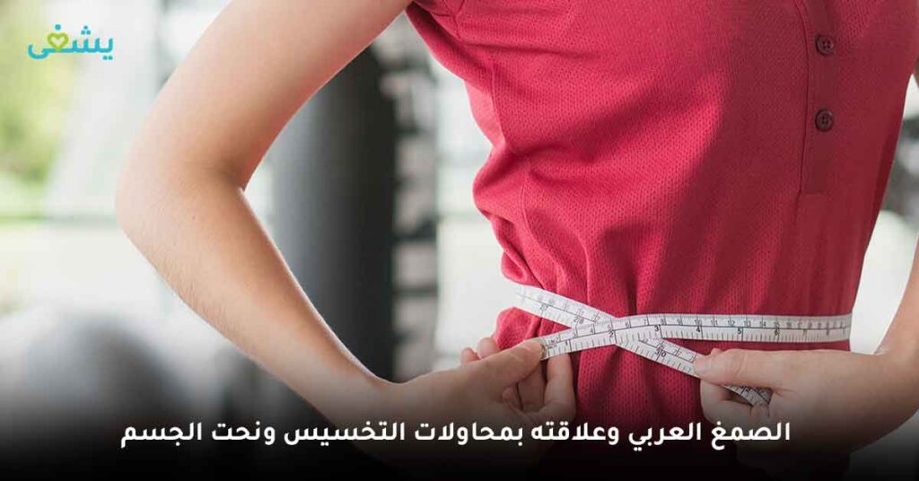 هناك علاقة وثيقة بين صمغ العربي والتخسيس؛ لأنه من ضمن الأعشاب الطبيعية الآمنة على إنقاص الوزن ونحت الجسم ؛ فمن فوائده للتخسيس: